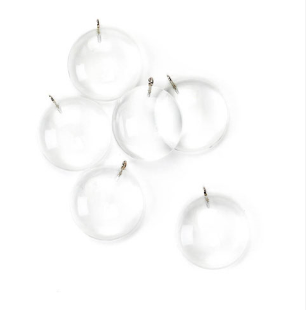 These charms are made of a crystal or glass material, with a hook at the top. These are flat on the back, with a beveling on the front.