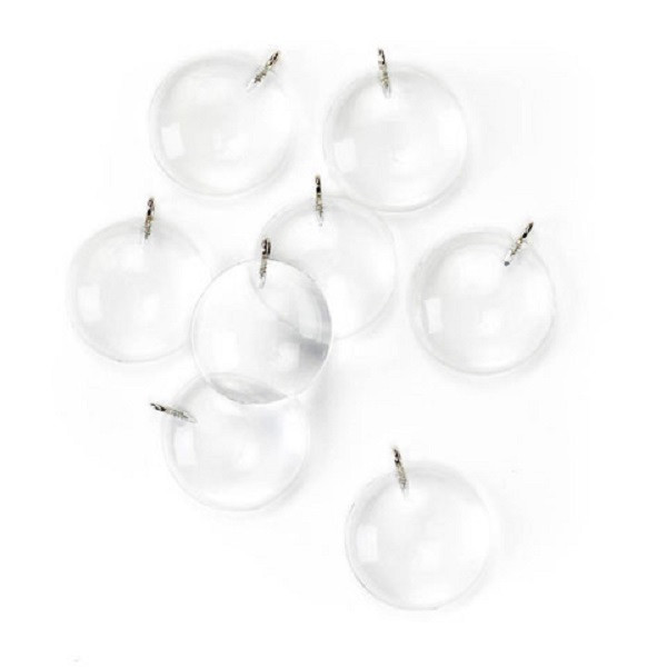 These charms are made of a crystal or glass material, with a hook at the top. These are flat on the back, with a beveling on the front.