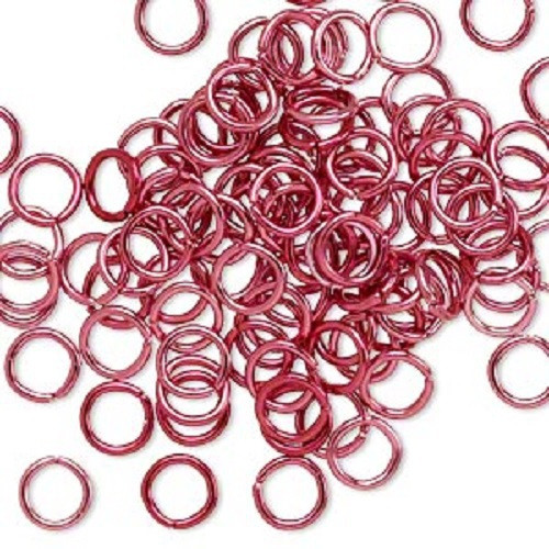 Aluminum jump-rings are lightweight, strong and easy to open and close. The color is created with an eight-step anodizing and dyeing process. This process creates long-lasting color that is resistant to tarnishing. Jumprings may have an iridescent finish caused by the fabrication process and base metal. Jump-ring sizes and gauges are approximate. Due to manufacturing, color intensity, shape of wire and size may vary slightly
